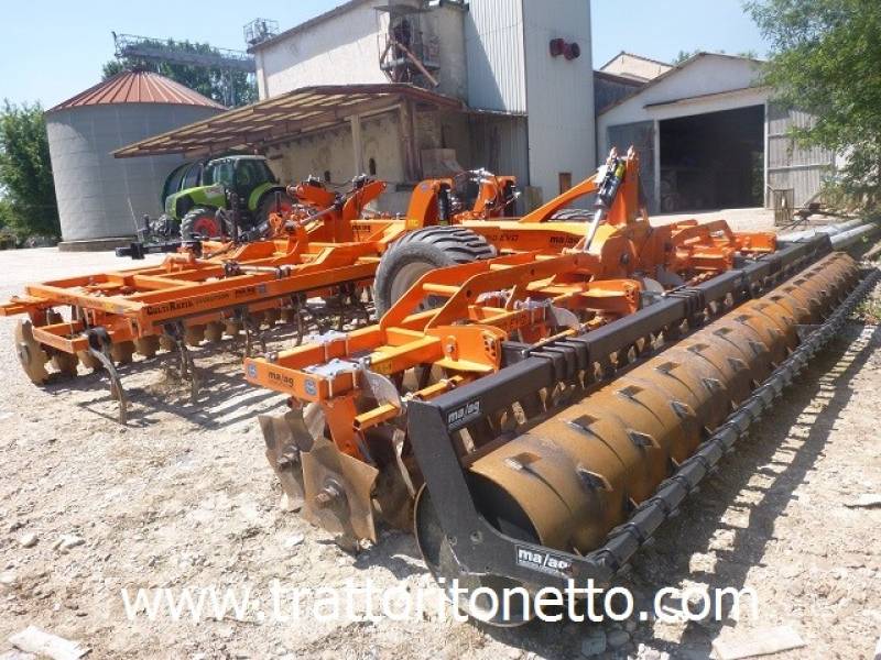 | Attrezzi accessori | Massa kg 7380, larghezza di trasporto mt 2,50, larghezza di lavoro mt 6,00, con dischiera anteriore, 2 file di denti, doppia dischiera stellare, rullo posteriore, omologazione stradale. |