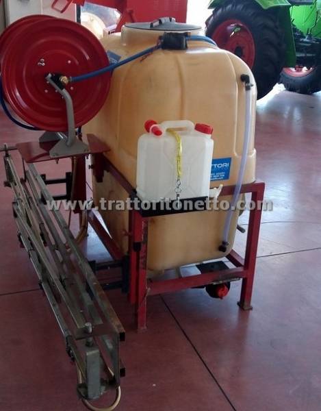 | Attrezzi accessori | Cisterna da 400 lt, comandi manuali, barre meccaniche da m 4, pompa COMET, con tubo e lancia per diserbo nuovi. COD. 354007 |