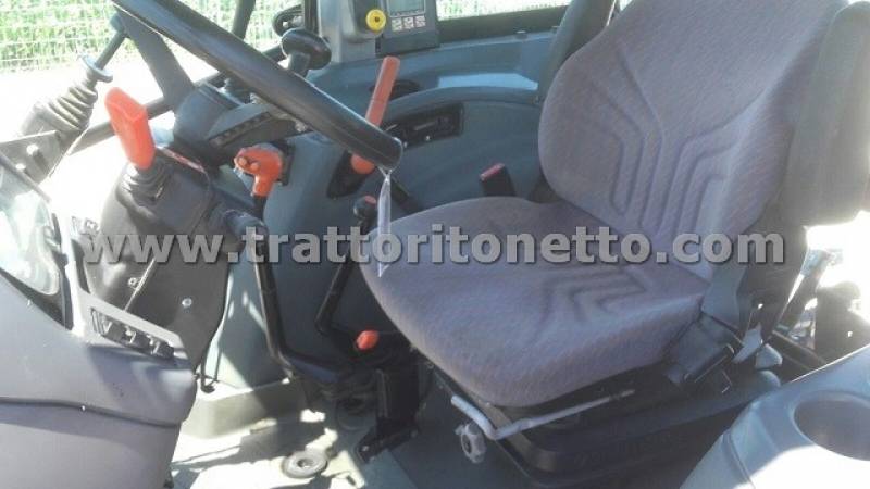 Cabina con a/c, impianto di frenatura idraulica per 140 q, inversore idraulico con HI-LO, 3 distributori a doppio effetto, dotato di caricatore frontale SIGMA 4 TITANIUM. COD. 379639