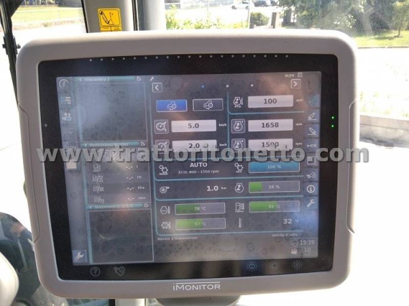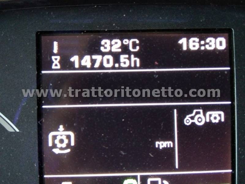 | Attrezzi accessori | Cabina sospesa, ammortizzata, a/c, sedile passeggero, 4 distributori elettrici posteriori a doppio effetto, impianto di frenatura pneumatica per 200 q, assale ammortizzato, sollevatore anteriore (no zavorre anteriori), telecamera posteriore e predisposizione per guida automatica. Targa BP863T. |