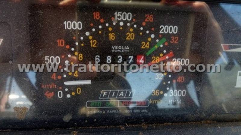 | Attrezzi accessori | Cabina con riscaldamento, trasmissione meccanica, sollevatore posteriore meccanico, 3 distributori idraulici posteriori, 2 ganci di traino a perni, impianto di frenatura pneumatica, PTO a 2 velocità (540-1000), 40 km/h, sollevatore anteriore. Targa TV 53901. COD. 389043 |